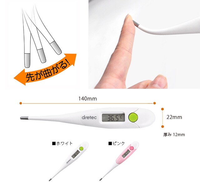 [ピンク]【TO-102WT やわらかタッチ体温計】やわらかく曲がるから、肌にやさしく脇にフィットします