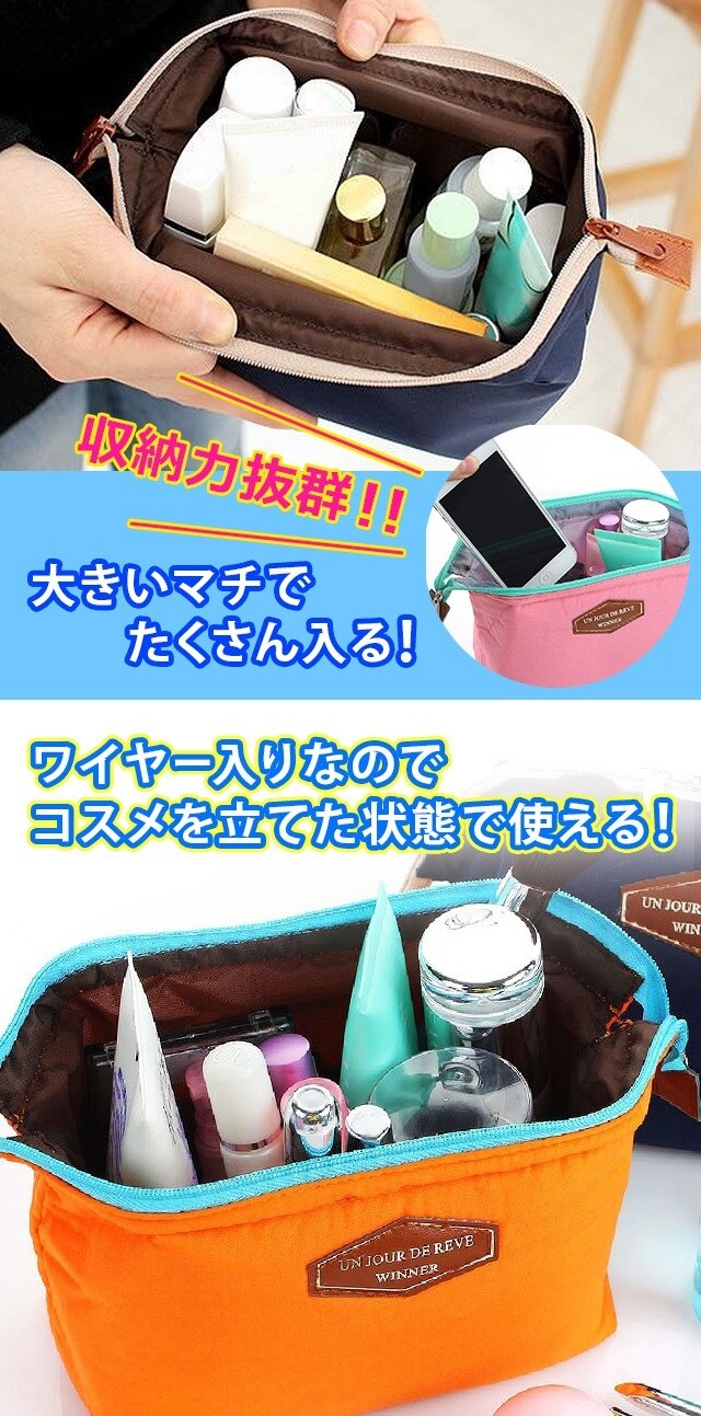 [ネイビー]立体コスメポーチ|必要な物が簡単に見つかる♪
