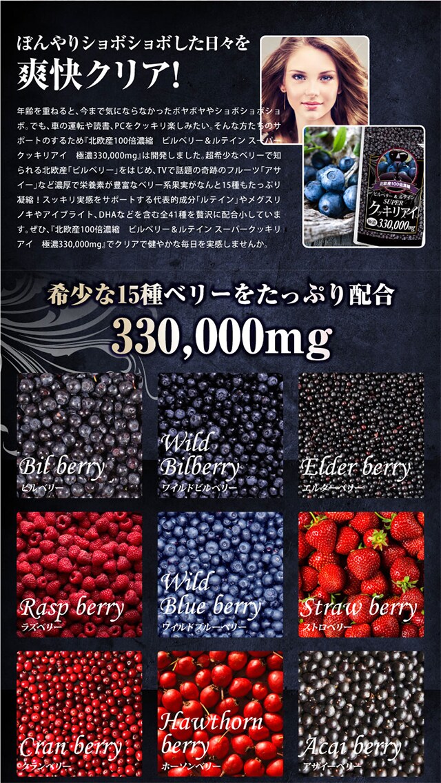・厳選15種天然生ベリー極濃エキス等33万mgカプセル詰め
