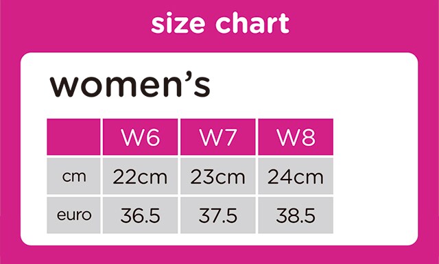 1cm刻みのサイズ展開となります。足の実寸のままのサイズをお勧めします。例えば足の実寸が23〜23.5cmの方は23cm(W7)をお勧めします。