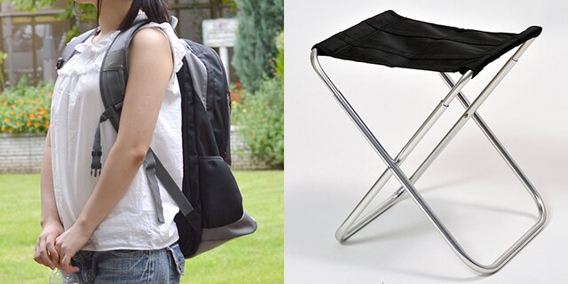 ・リュックに折り畳みイスが収納されているからいつでもどこでも座れる!!