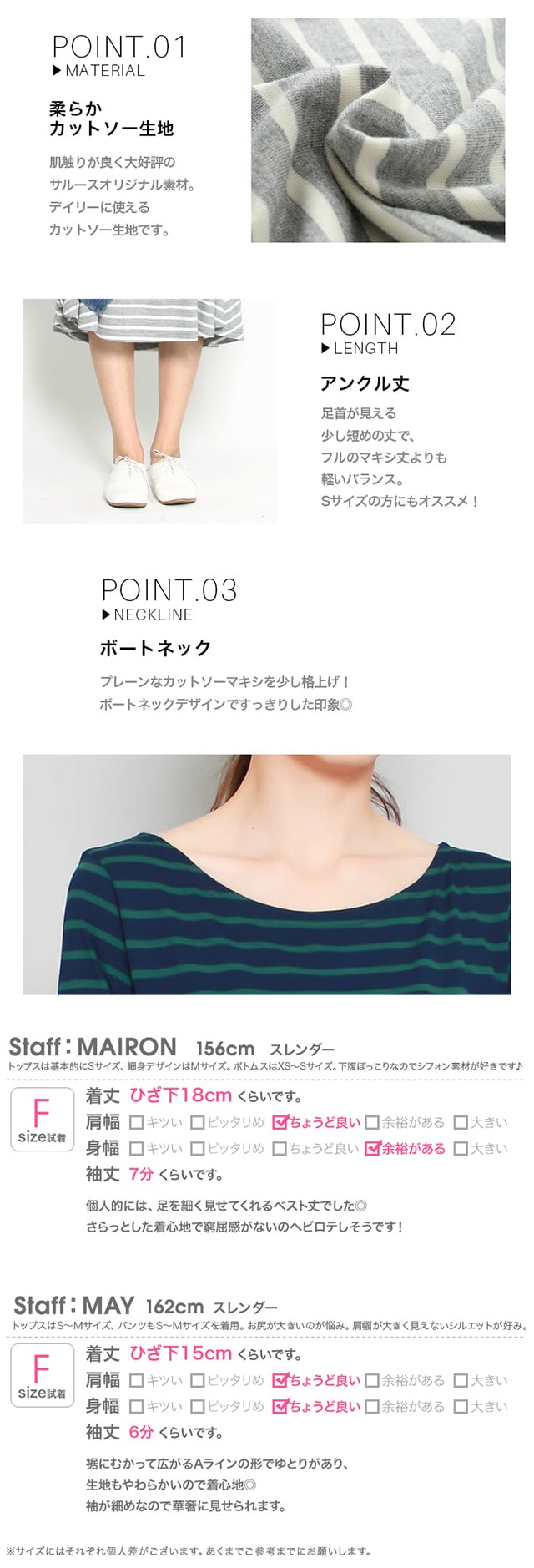足首が見える少し短めのロング丈なのでマキシ丈よりも軽いバランス。