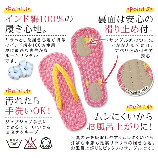 お風呂上りにもぴったり!インド綿100%のさらりとした肌触りがとってもきもちいいサンダルです。