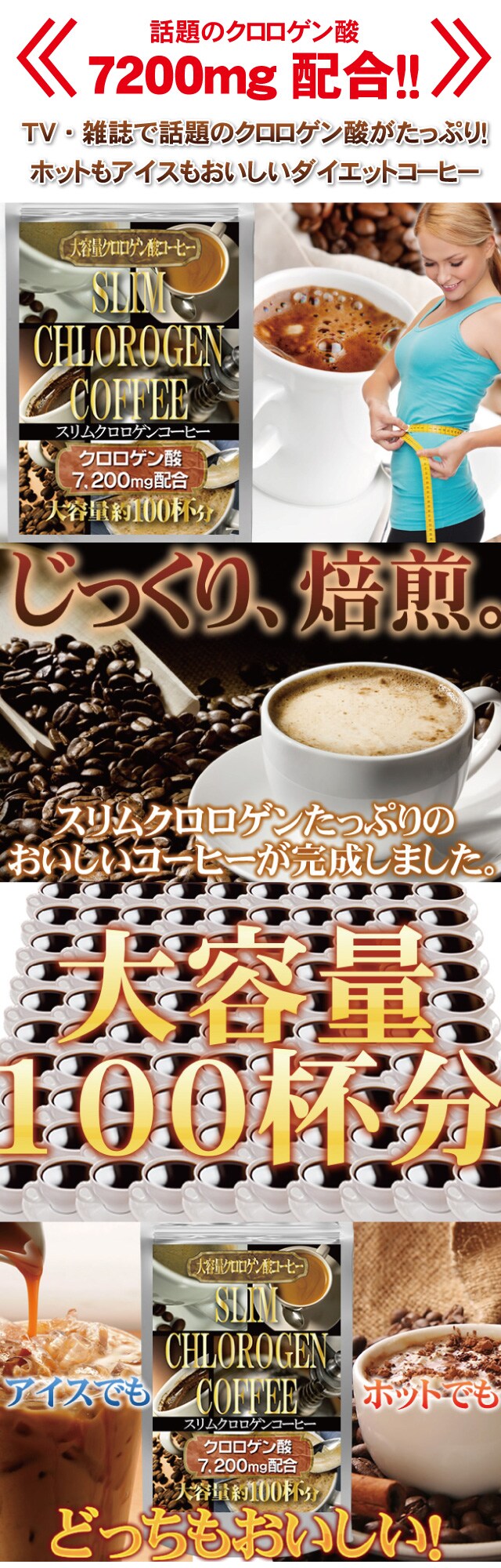 スリムクロロゲン酸珈琲 100g | 大容量100杯分!体形が気になる方に。毎日1杯のコーヒーをこのコーヒーに変えるだけでダイエットをサポート。