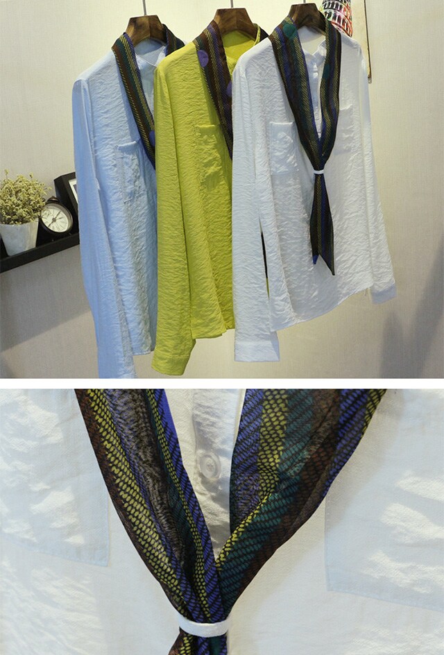 Miss R GOLD ポイントスカーフ付きorリボン結び フロントポケット 長袖シャツ・ブラウス レディース(3色)