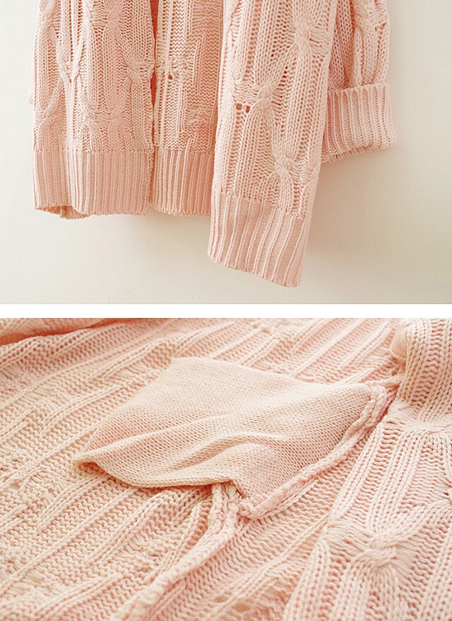 - Miss R GOLD ケーブル編み 春ニット/カーディガン パステルカラー/ロングカーディガン/ニットガウン レディース (4色) / sw325-pink-free