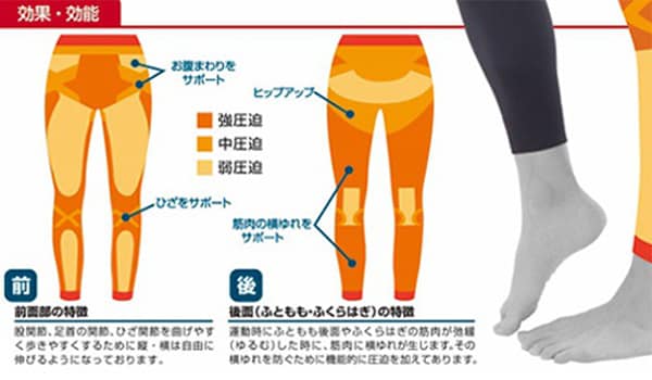 ●はくだけでテーピング効果を発揮!運動時に発生する筋肉の横ブレを軽減