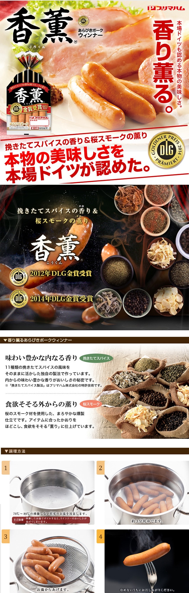 プリマハム DLG金賞受賞 香薫ウインナー 1ケース(12束) | 本場ドイツも認める本物の美味しさ!