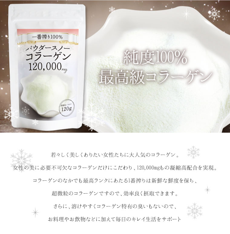パウダースノーコラーゲン120,000mg×2袋 | 質がいのち”1番搾り特Aクラス”純度100%超吸収コラーゲン12万mgを凝縮配合!お得な2袋セット♪