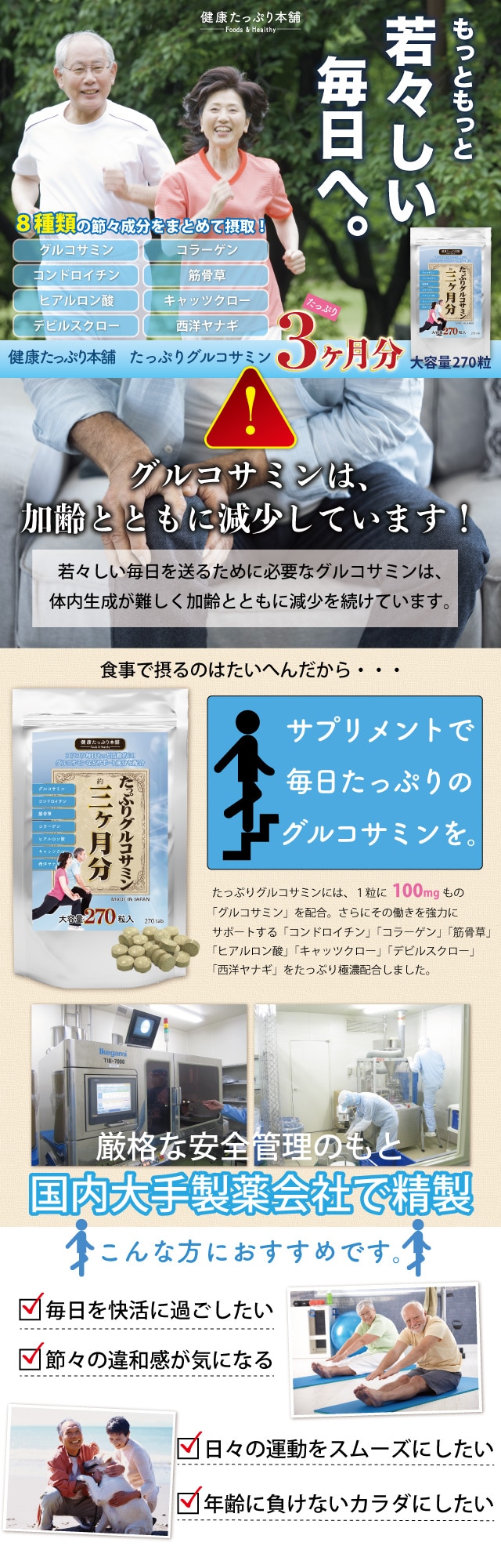 たっぷりグルコサミン 3ヶ月分 270粒 | グルコサミンにコンドロイチン+注目成分の筋骨草エキスを凝縮配合!動くのが楽しくなる♪毎日を快適に!