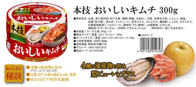 おいしさの秘訣は(1)4種(イワシ、コンブ、エビ、カキ)の海産物の旨み。(2)白菜と切干大根の歯応えの良い食感。(3)旨さひきだす特許乳酸菌。