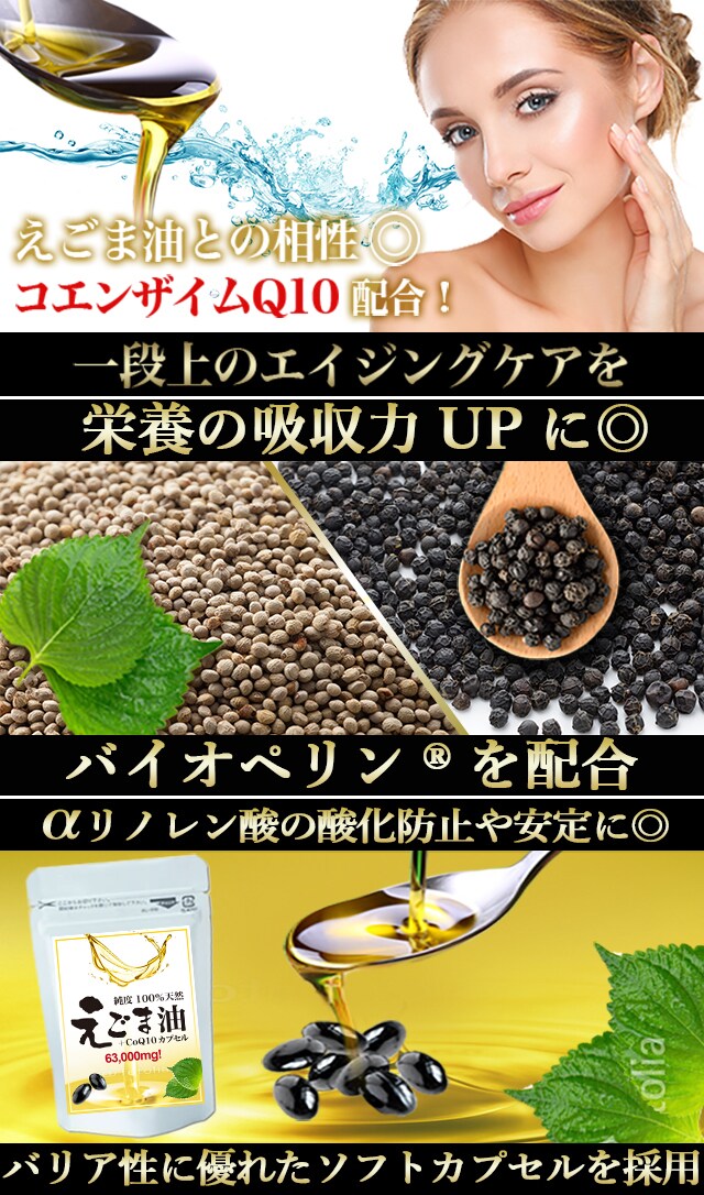 - 新鮮で純度100%のえごま油を使用!【えごま油+CoQ10カプセル63000mg!】