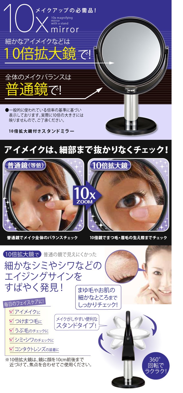 10倍拡大鏡付きスタンドミラー | メイクアップの必需品
