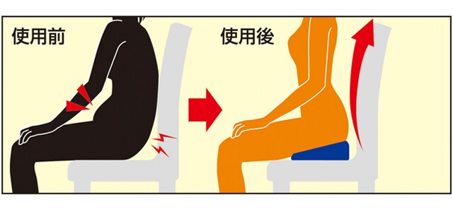 ・骨盤を高反発ウレタンが左右後方から包み込んで引き締めしっかり支え背筋もピン!