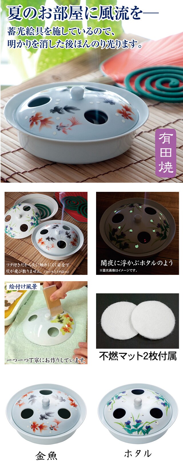 有田焼 蚊とり線香皿 金魚 | 日本の風景を描いた蚊取り線香皿.。夏の風物詩、蚊取り線香。