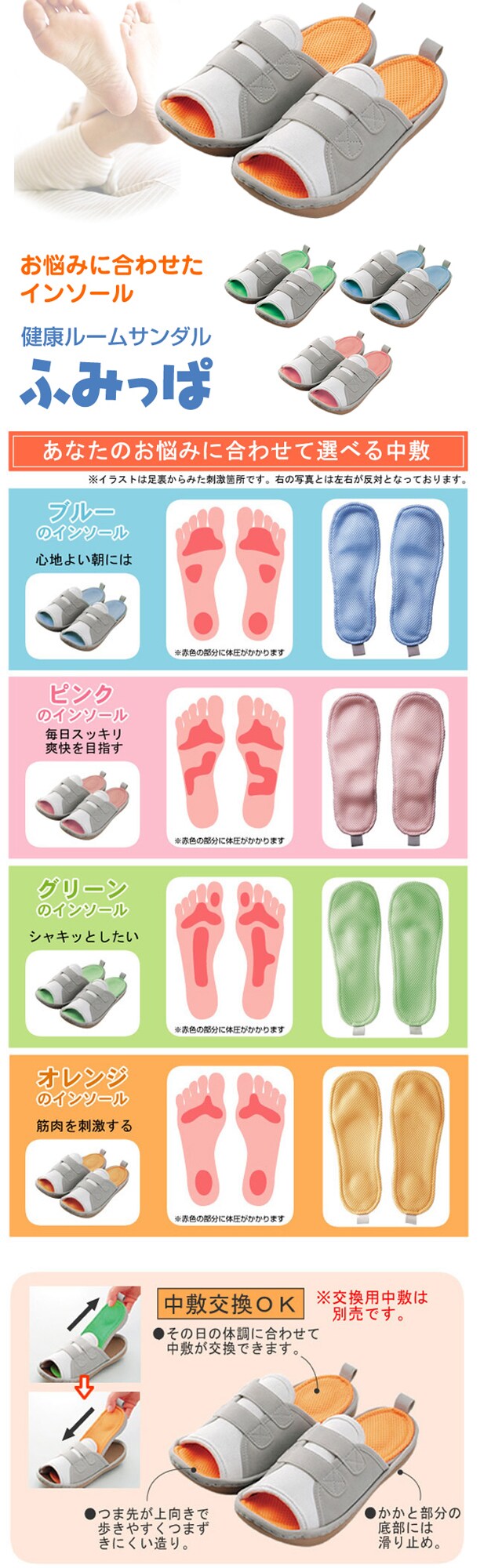 [グリーン]健康ルームサンダル ふみっぱ | 足の裏をここちよく気になる部分を集中刺激!