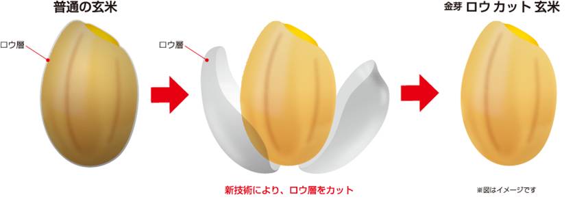 新技術で玄米の蝋(ロウ)層を均等に除去(カット)することで、白米のように食べやすい玄米ごはんができました。玄米とほぼ同等に栄養価が高く、消化性に優れたパックごはんです。