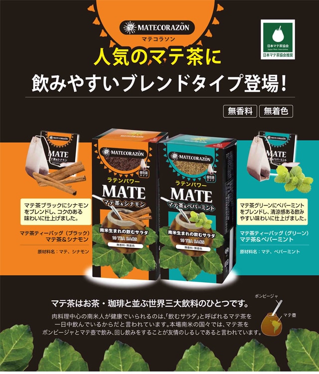 マテ茶ブラックにシナモンをブレンドし、コクのある味わいに仕上げました。