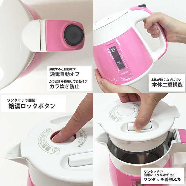 タイガー 電気ポット PCF-G080 PS(サクラピンク) | 2012年キッズデザイン賞を受賞。本体が熱くなりにくい二重構造の安全設計。