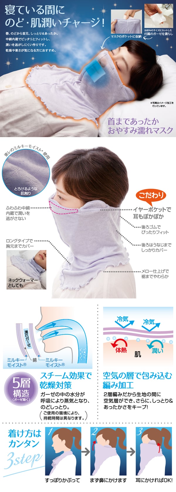 首まであったかおやすみ濡れマスク | 寝ている間にのど、肌しっとりキープ。