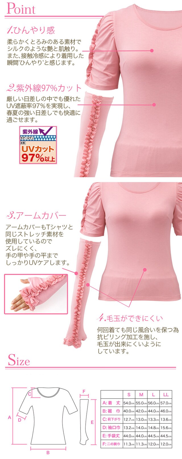 厳しい日差しの中でも優れた「UV遮蔽率97%」を実現 BRADELIS New York モダールサンUVゴージャスフリルTシャツ&アームカバー