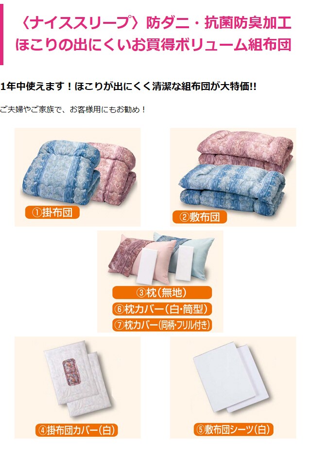 [ピンク系]ナイスリリープ ほこりの出にくいボリューム組布団 シングル8点セット | 1年中使えます!ほこりが出にくく清潔な組布団がお得!!