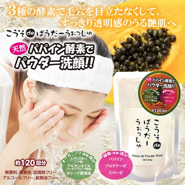 こうそdeぱうだーうぉっしゅ 80g×2個 | パパイヤ酵素でパウダー洗顔!!3種の酵素で毛穴を目立たなくして、すっきり透明感のうる艶肌へ