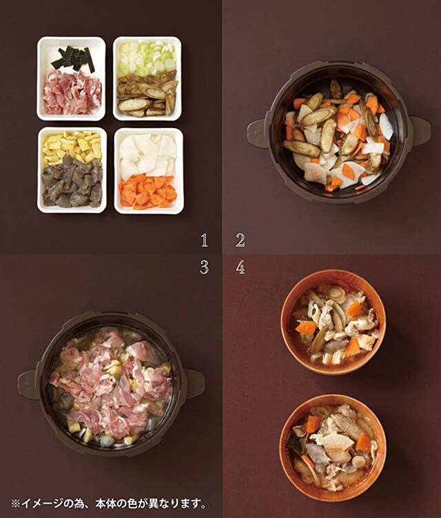 時間のかかるカレーやシチューなどの煮込み料理も、電子レンジ圧力鍋なら短時間で作れる。おしゃれなデザインなので、調理後はそのままテーブルへ!