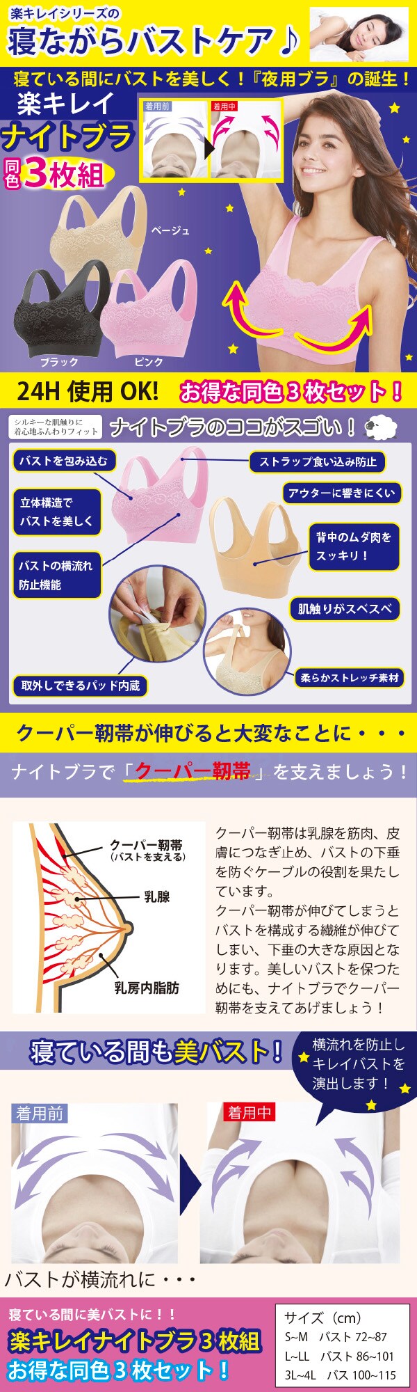 [ブラック/3L-4L]楽キレイ ナイトブラ 3枚セット | 寝ている間もバストを美しく!楽キレイシリーズの夜用ブラ!
