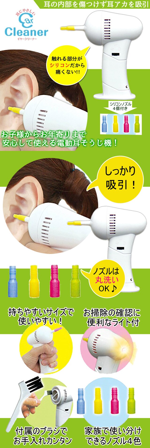 耳にやさしいイヤークリーナー | お子様からお年寄りまで安心して使える電動耳アカ吸引機!シリコンノズルは丸洗い可能♪