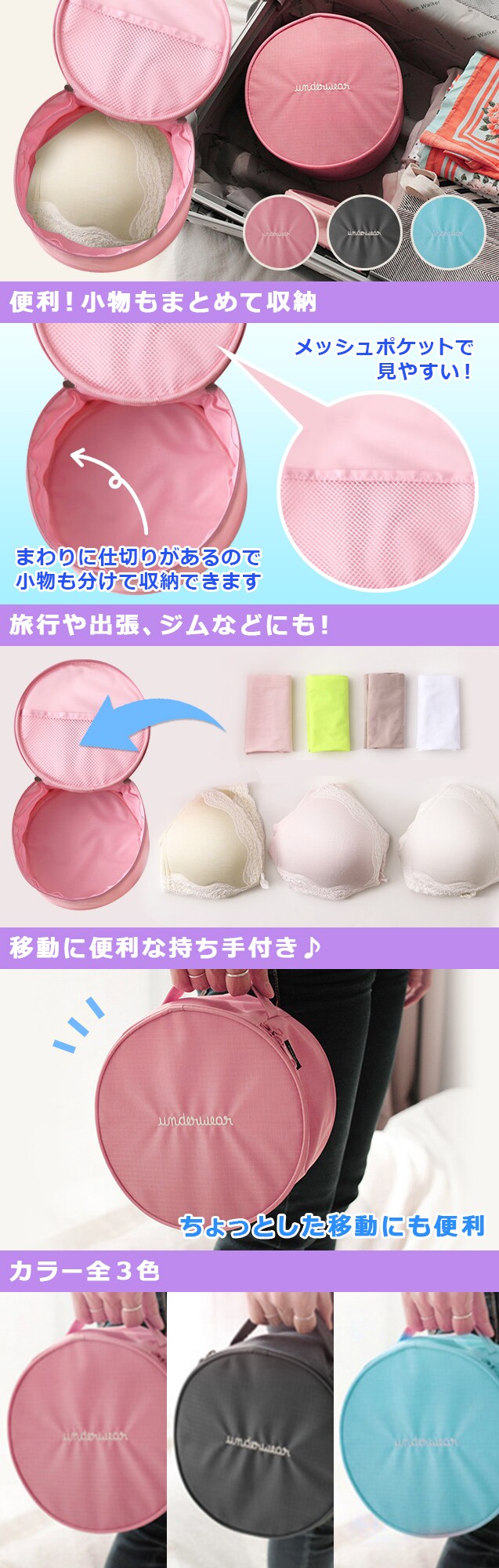 [ネイビー]丸型ランジェリーポーチ | 丸形コンパクト!持ち手付きポーチ!