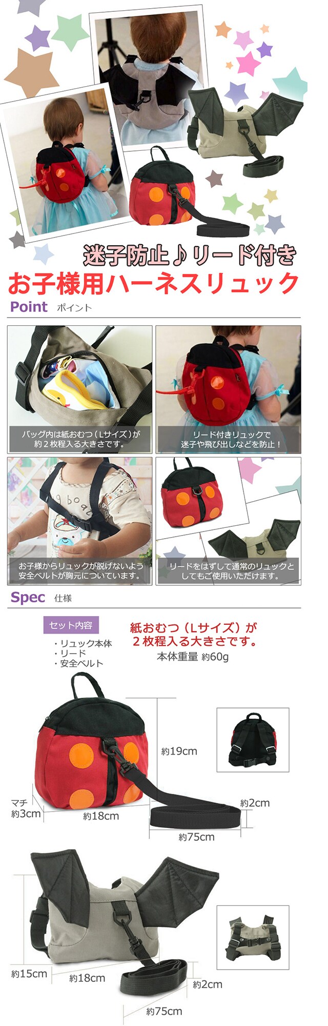- 【てんとう虫】迷子防止のリードが付いている可愛いリュック
