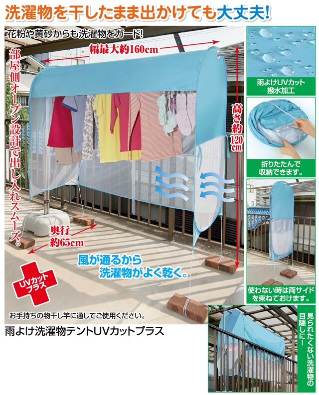 雨よけ洗濯物テントUVカットプラス | 洗濯物を干したまま出かけても大丈夫!