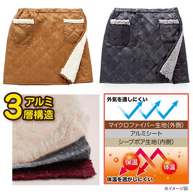アルミシート入りであったかい HOTαアルミの暖力 キルティング巻きスカート