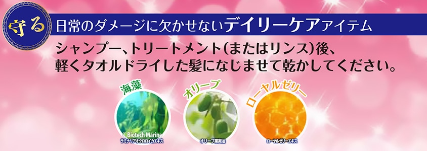 フランス・ブルターニュ産の海藻のエキスを配合。ダメージヘアに浸透し潤いを与えます。