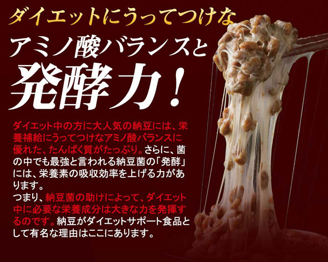 アミノ酸バランスに優れたたんぱく質がたっぷり含まれる納豆に着目した『おとすりむ水戸納豆』。納豆の力に強力サポートをプラス!リフレならではの厳選9成分を配合しました。