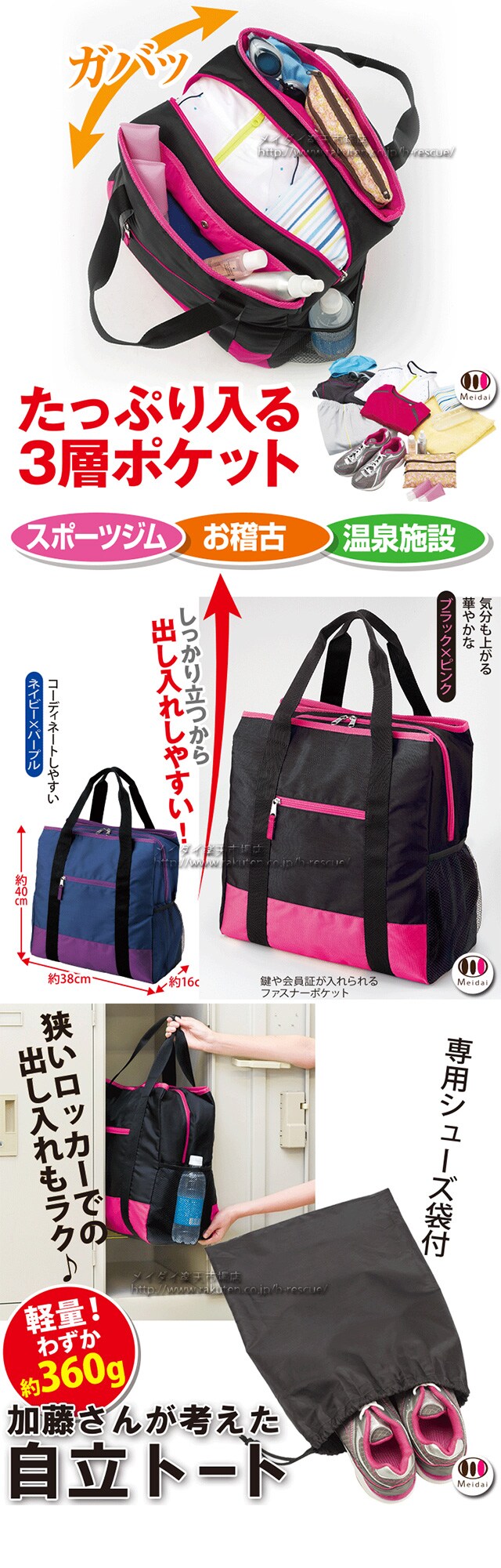 加藤さんが考えた自立トート(ネイビー×パープル) | しっかり立つから出し入れしやすい!ジムやお稽古で大活躍!!