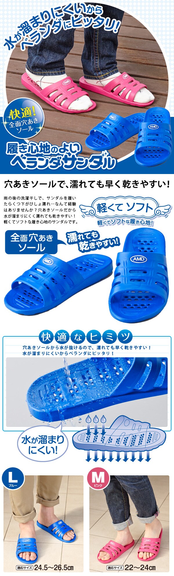 全面穴あきソールで水が溜まりにくいからベランダにピッタリ。