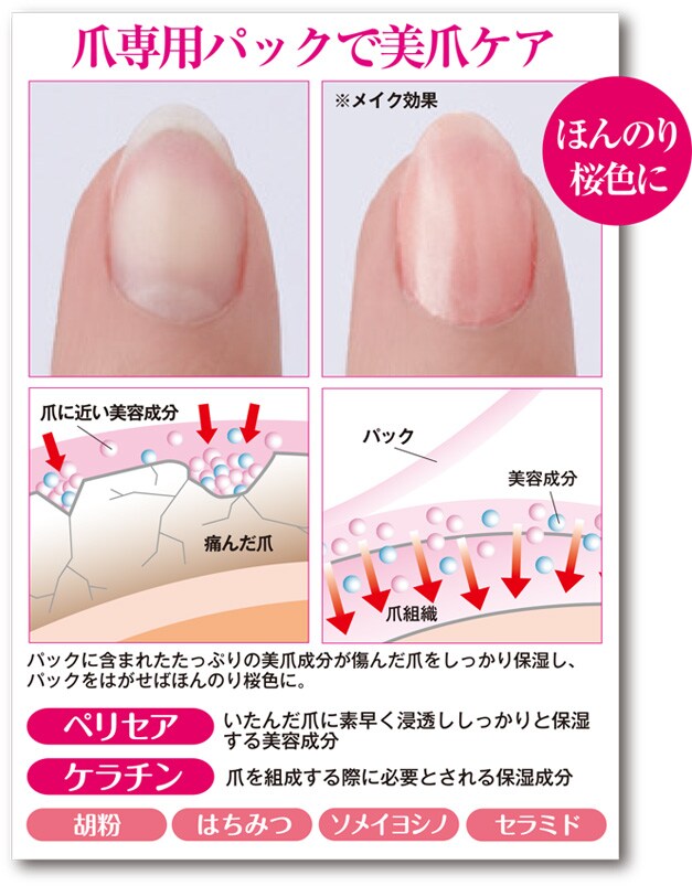 ガチガチ爪や、ドンヨリ黒ずんだ爪に。ネイルなどで傷んだ爪をケアして、ほんのり桜色に染める爪用パックです。