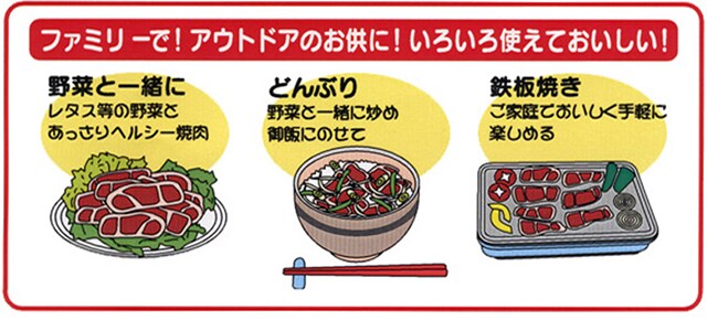 原材料:羊肉、醤油、砂糖、リンゴ果汁、発酵調味料、生姜、ニンニク、香辛料、ゴマ油、調味料(アミノ酸等)、酸味料、リン酸塩(Na)、カラメル色素、原材料の一部に大豆・小麦含む