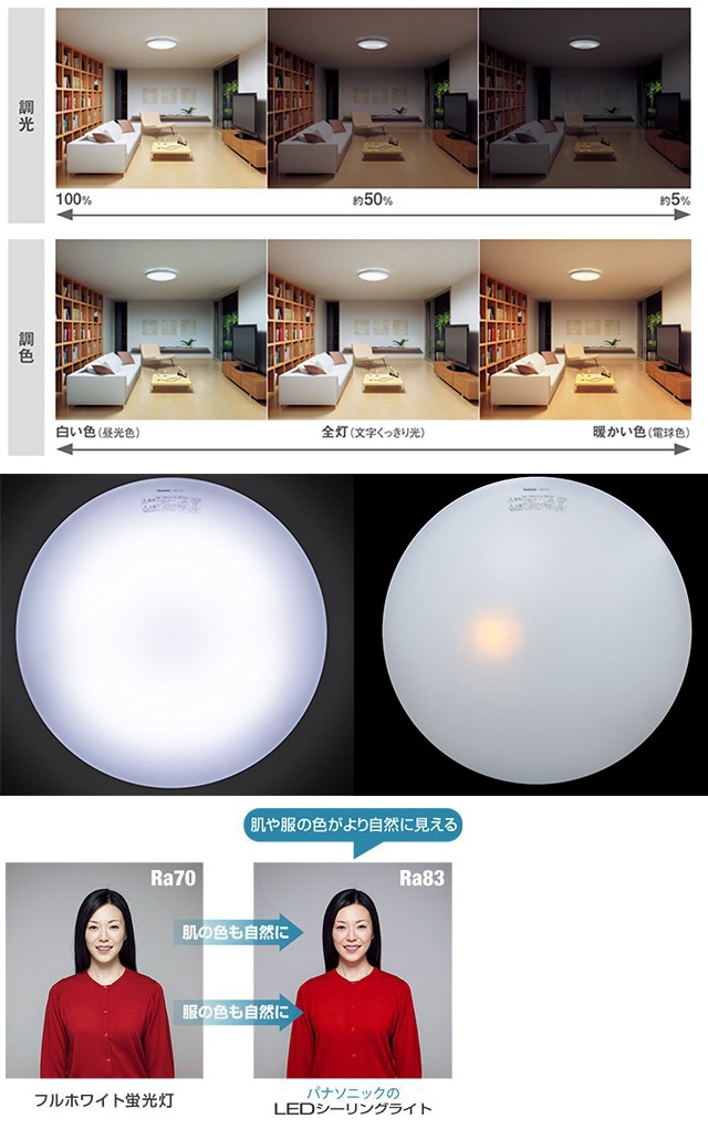 Panasonic(パナソニック)/LEDシーリングライト(調光調色/~8畳用)/LHR1084H | 使い方に合わせて欲しい明るさを自在に調光できます!