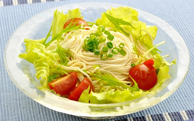 とうふでできていますが、製法にこだわり、まるでそうめんのような見た目、食感に近づけています。
