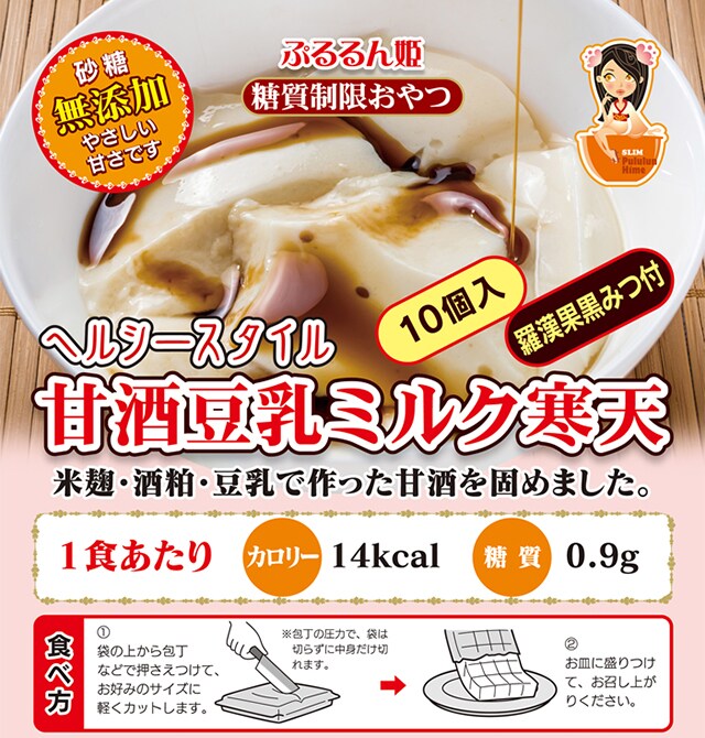 ぷるるん姫 甘酒豆乳ミルク寒天 10個入り (羅漢果黒みつ付) | 今話題の甘酒を寒天で固めた美容甘酒デザート!