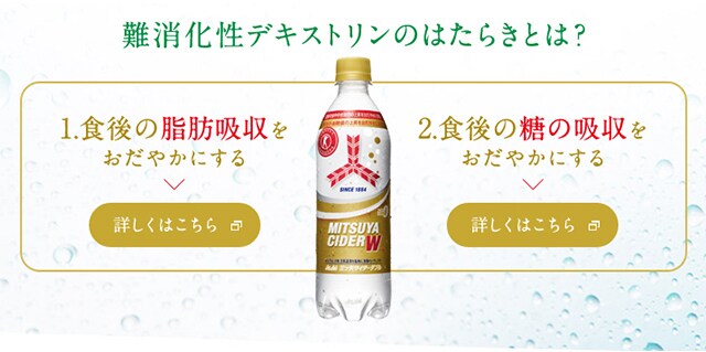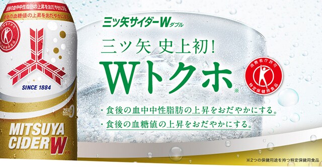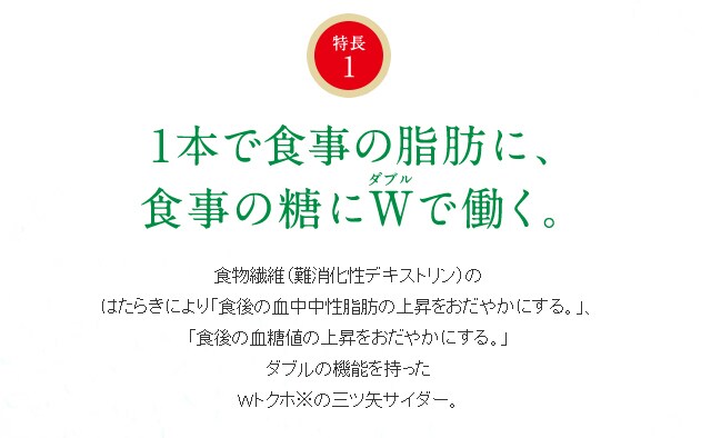 食後の血中中性脂肪の上昇と血糖値の上昇をおだやかにするダブルの機能を持ったWトクホの三ツ矢サイダー。