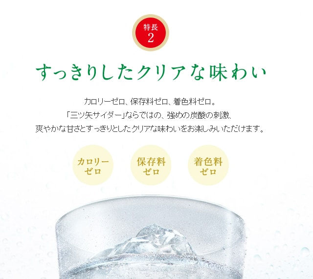 ・カフェインゼロ、カロリーゼロ、保存料・着色料ゼロによるクリアな味わい。