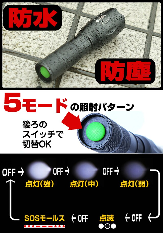 高照度T6LEDハンディライト | 地震や停電の備えに!最大500m先まで照射可能!防水&防塵仕様!