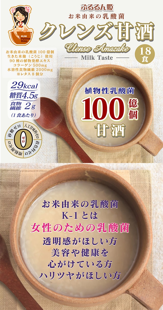 ぷるるん姫 クレンズ甘酒 ミルク味 18包入り(1包17g) | お米由来の乳酸菌100億個のダイエット甘酒♪生きた酵素・コラーゲン・90種植物発酵エキス・食物繊維の美容成分入り♪
