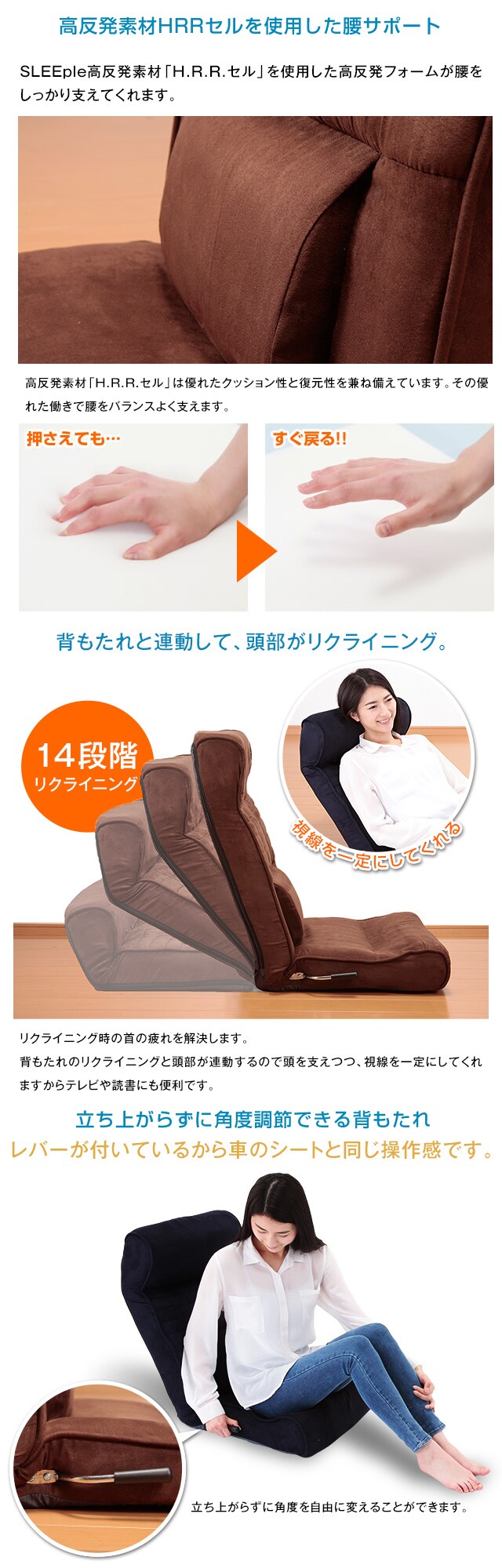 [ブラウン]腰にやさしい高反発座椅子 DX (座ったままリクライニング) | リラックスできて…楽しくて…そんな貴方専用の場所をご用意!