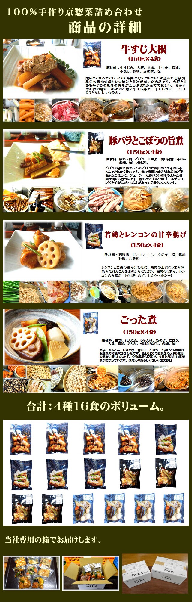 - 【4種16食】ガッツリ系!手作り京惣菜 /温めるだけの簡単調...