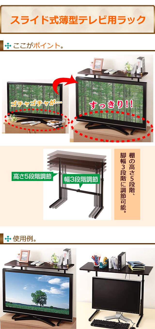 [ブラック]スライド式薄型テレビ用ラック | テレビ周りがすっきり片付く薄型テレビラック!!